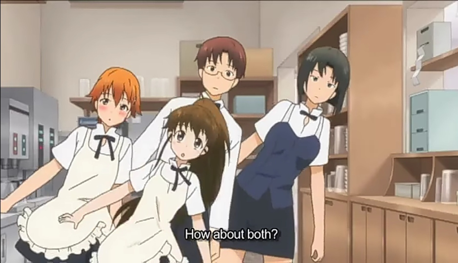 Working!! memiliki rating 7,6/10 di MyAnimeList dan 7,3/10 di IMDb. Working!! adalah anime yang bercerita tentang restoran keluarga yang ada di Hokkaido. Di anime ini kita akan melihat berbagai macam karakter. Diawal cerita restoran tersebut kekurangan pegawai dan mulai merekrut karyawan bernama Popura Taneshima dia memiliki perawakan yang kecil dan lucu oleh karena itu dia direkrut oleh Souta Takanashi, karena Souta memiliki kesukaan pada sesuatu lucu dan kecil. Di anime ini kita tidak akan bosan menontonnya karena sering selipi oleh komedi-komedi yang bisa membuat kita tertawa.